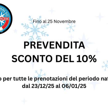 SCONTO 10% SUTTE LE PRENOTAZIONE DEL PERIODO NATALIZIO DAL 22/12/2025 AL 06/01/2026